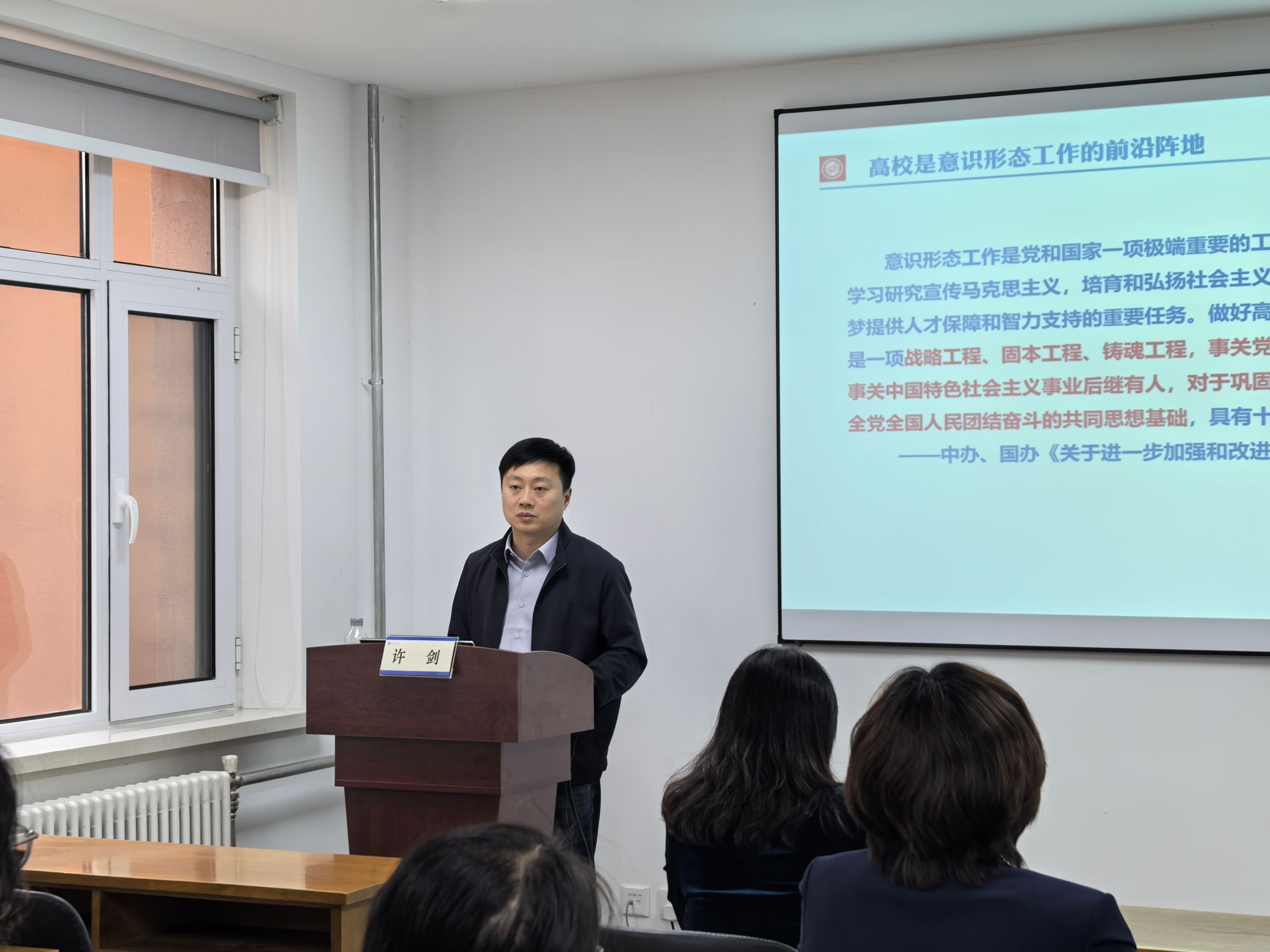 许剑副部长围绕如何提升高校意识形态工作水平进行了深入讲解。他从加强理论学习、强化阵地管理、做好舆情引导等多个方面提出了具体要求和建议,还结合实际案例,分析了当前高校意识形态工作中存在的问题和挑战。他强调,学院干部要带头深入学习习近平新时代中国特色社会主义思想,用党的创新理论武装头脑、指导实践、推动工作。同时,要加强对学院各类宣传阵地的管理,严格把控信息发布渠道,防止错误思想和不良信息的传播。学院干部必须高度重视意识形态工作,切实履行职责,加强协同配合,形成工作合力,共同推动高校意识形态工作再上新台阶。
