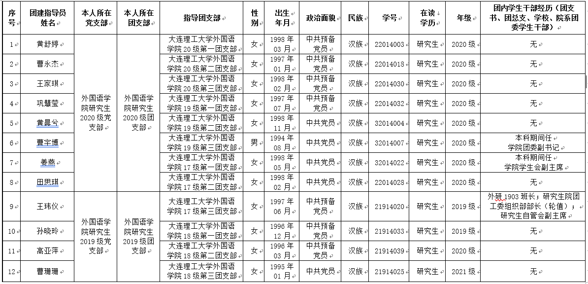 根据校团委和组织部要求,强化“党建带团建、团建促党建”,提升团支部组织力,加强团支部政治功能,发挥党的助手和后备军作用,学院结合党支部与学生群体的覆盖关系,建立党支部与团支部一对一的共建指导机制;按照一对一关系在所属党支部中选派优秀学生党员担任联系团支部的“团建指导员”,具体选派方案如下:
