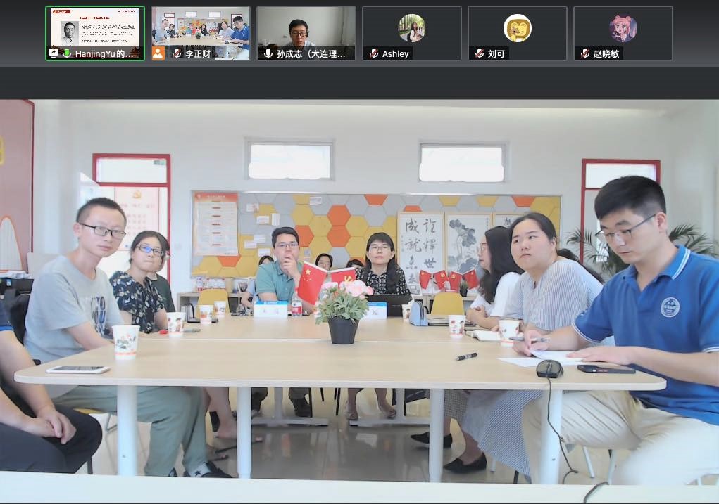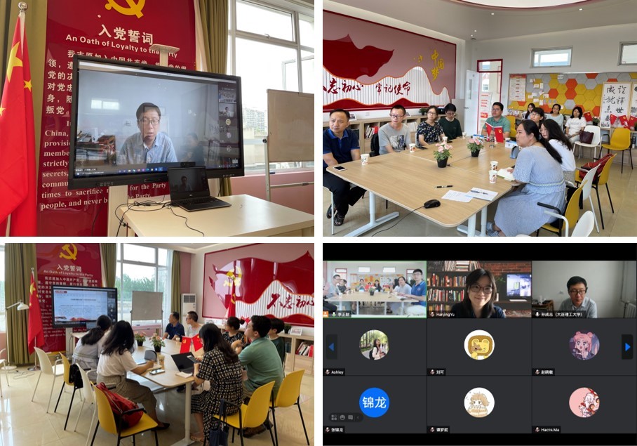 学习党史环节结束后,是话外语、促科研的环节。首先,由大工外语副院长孙成志分享了大工外国语学院近年来在理工科外语类院校中发挥多语种优势,以及英语教师的教学和科研特色。他表示,希望双方今后继续凝聚党建合力,实现同频共振、合作共赢,激发党建新活力,把党的历史学习好、总结好,把党的精神传承好、发扬好,鼓励外语学子能与国家、民族、人民的脉搏一起,生生不息、奋勇前行。