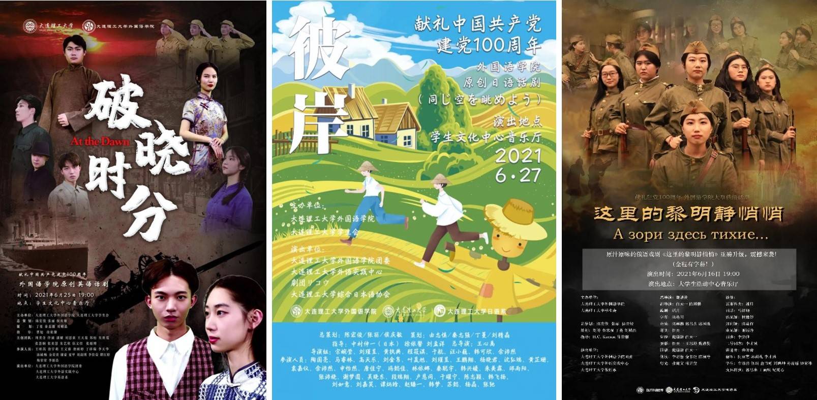 结合专业特色,在第二课堂实践课程思政。献礼建党百年,举办大连理工大学第五届外语活动月,开展英语(At the Dawn《破晓时分》)、日语(同じ空を眺めよう《彼岸》)、俄语(А зори здесь тихие《这里的黎明静悄悄》)多个语种红色主题戏剧公演,讲好家国故事;围绕红色主题开展外语配音、朗读和诗歌大赛,营造外语氛围,激扬活力青春;举办英语演讲和口译比赛,淬炼外语能力,展现学子风采。学院通过党史学习教育,引导全院师生胸怀“两个大局”,心怀“国之大者”。
