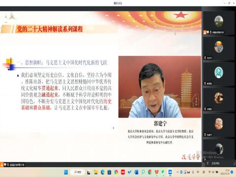 最后,全体同志听取了郭建宁教授以“党的二十大的重要理论创新”为题的主题党课。大家深刻学习了中国式现代化的中国特色、本质要求、重大原则,中国式现代化的战略部署、战略安排、战略举措,深刻领会了“三个务必”的深刻内涵,面对世界百年未有之大变局,必须敢于斗争、善于斗争,依靠顽强斗争打开事业发展新天地。