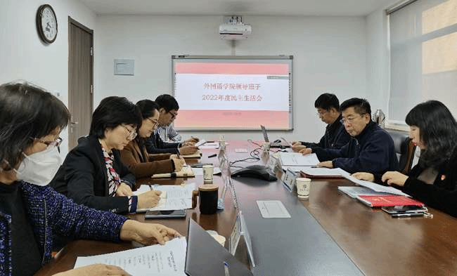 2023年1月5日下午,大连理工大学外国语学院召开2022年度班子民主生活会。大连理工大学党委常委、副校长罗钟铉到会指导。会议由学院党委书记张丽主持,采取线上线下结合的方式进行,外国语学院主校区、盘锦分院领导班子全体成员参加会议。