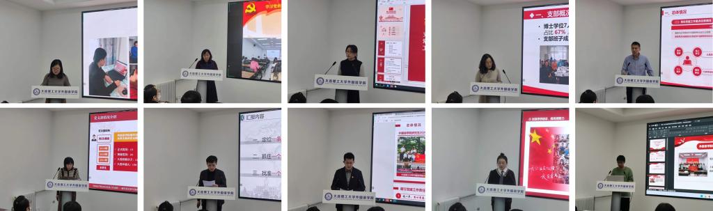 随后,学院12个基层党支部书记进行2022年度抓党建工作述职。党支部书记们分别结合自身特点就支部党建及思想政治工作开展情况、支部特色工作、存在问题和整改措施进行汇报。述职内容主题明确,丰富生动,特色鲜明,充分展现了党支部重点任务、党建特色品牌、党员先锋模范发挥的扎实风貌,基层党组织的政治功能和组织功能均有提升。