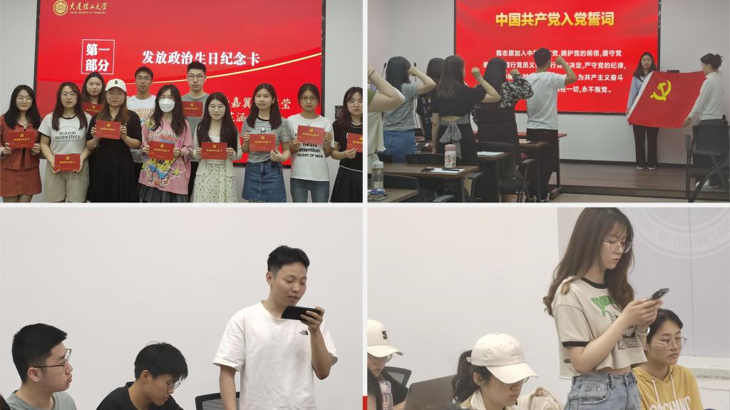以学增智,筑牢对党忠诚。开展“学思想,强党性”双语解读原著特色活动,坚持读原著、学原文、悟真理,党员围绕《习近平新时代中国特色社会主义思想专题摘编》内容进行双语解读和个人感悟分享,将新时代党的思想理论成果和外语专业特色相融合;开展“政治生日强党性”主题党日,每季度为支部党员庆祝政治生日和发放政治生日贺卡,各位党员牢记入党誓词,永葆共产党员的先进本色。