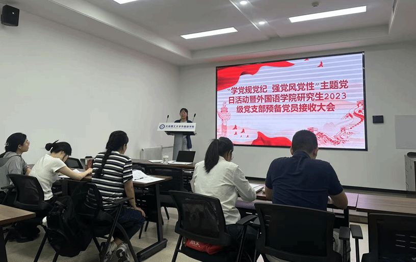 为进一步加强和推进学生党员队伍建设,切实提高学生党员发展质量,保持学生党员队伍先进性和纯洁性,2024年5月28日,外国语学院研究生2023级党支部在海晏楼715召开接收预备党员大会与主题党日活动。会议由外国语学院研究生2023级党支部书记康静怡主持,支部全体党员及杨晨等5名发展对象参加会议。