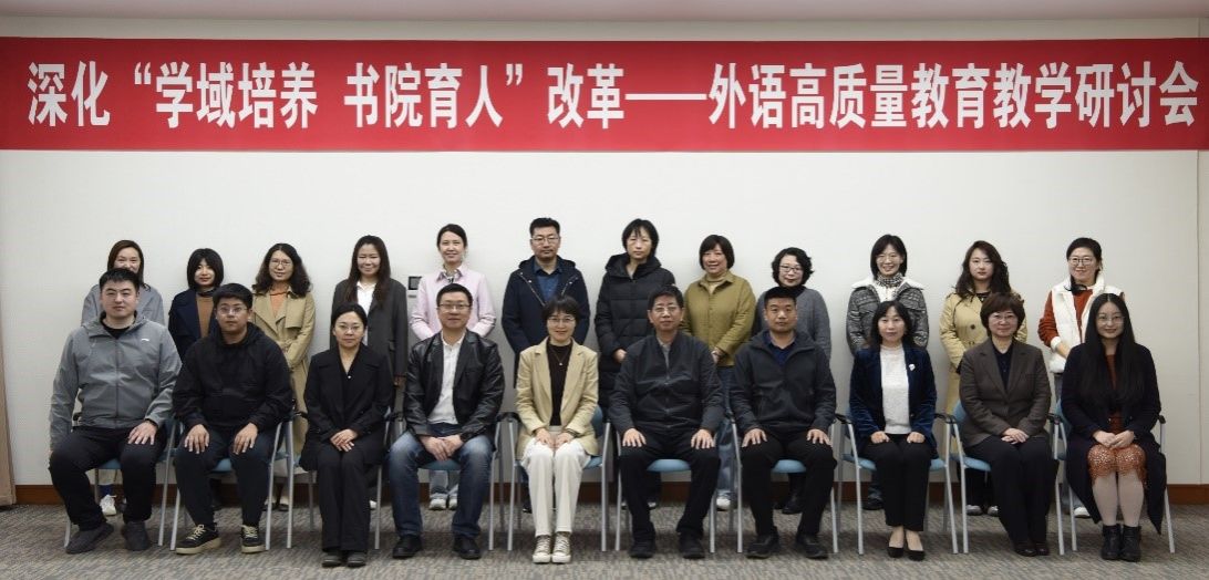 4月18日下午,外国语学院在伯川图书馆普罗名特厅组织召开深化“学域培养、书院育人”改革---外语高质量教育教学研讨会,汇聚多方智慧,进一步探讨书院育人模式的共建方向,赋能外语新优势锻造,培养拔尖创新人才。大工书院院长王一、教务处副处长刘勃和各书院的执行院长、副院长及大学英语一线的全体教师出席,外国语学院党委书记张丽主持会议。