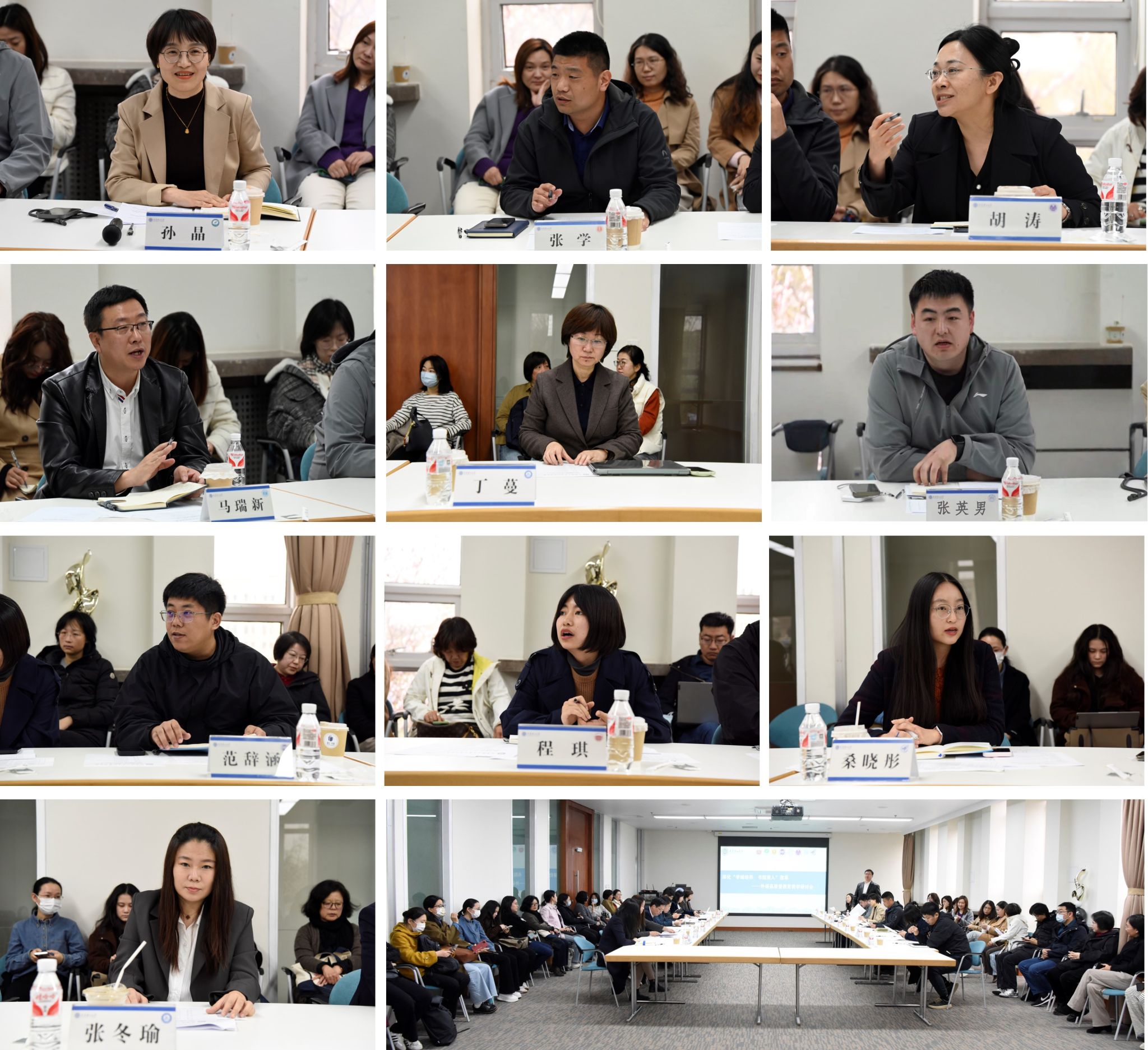 大工书院院长王一在肯定外国语学院与书院协同育人的基础上,就如何能够更精准地进行分层分类教学、如何对书院实践进行有效考核、如何提升书院实践课程内涵等提出建议。在讨论环节中,各参会代表积极为外语教学的高质量发展献计献策。伯川书院执行院长孙晶肯定了外语教学改革中将实践环节纳入评价体系中的大胆尝试,并就日强、俄强班外语能力提升提出了共建意向。令希书院执行院长张学就书院育人与外语共建提出了加强跨学科融合的建议,并表示书院将把具有国际化背景的教师纳入共建体系,加强学生跨文化交流的平台打造。笃学书院执行院长胡涛对大学生学术会议的组织提出了切实可行的方案。求实书院执行院长马瑞新指出,外语教学可以针对新时代大学生的特点充分利用人工智能技术,开展“情景驱动”的英语实践活动,用年轻人喜爱的方式创造学习氛围。教务处刘勃副处长和各书院的负责老师也提出宝贵意见和建议。