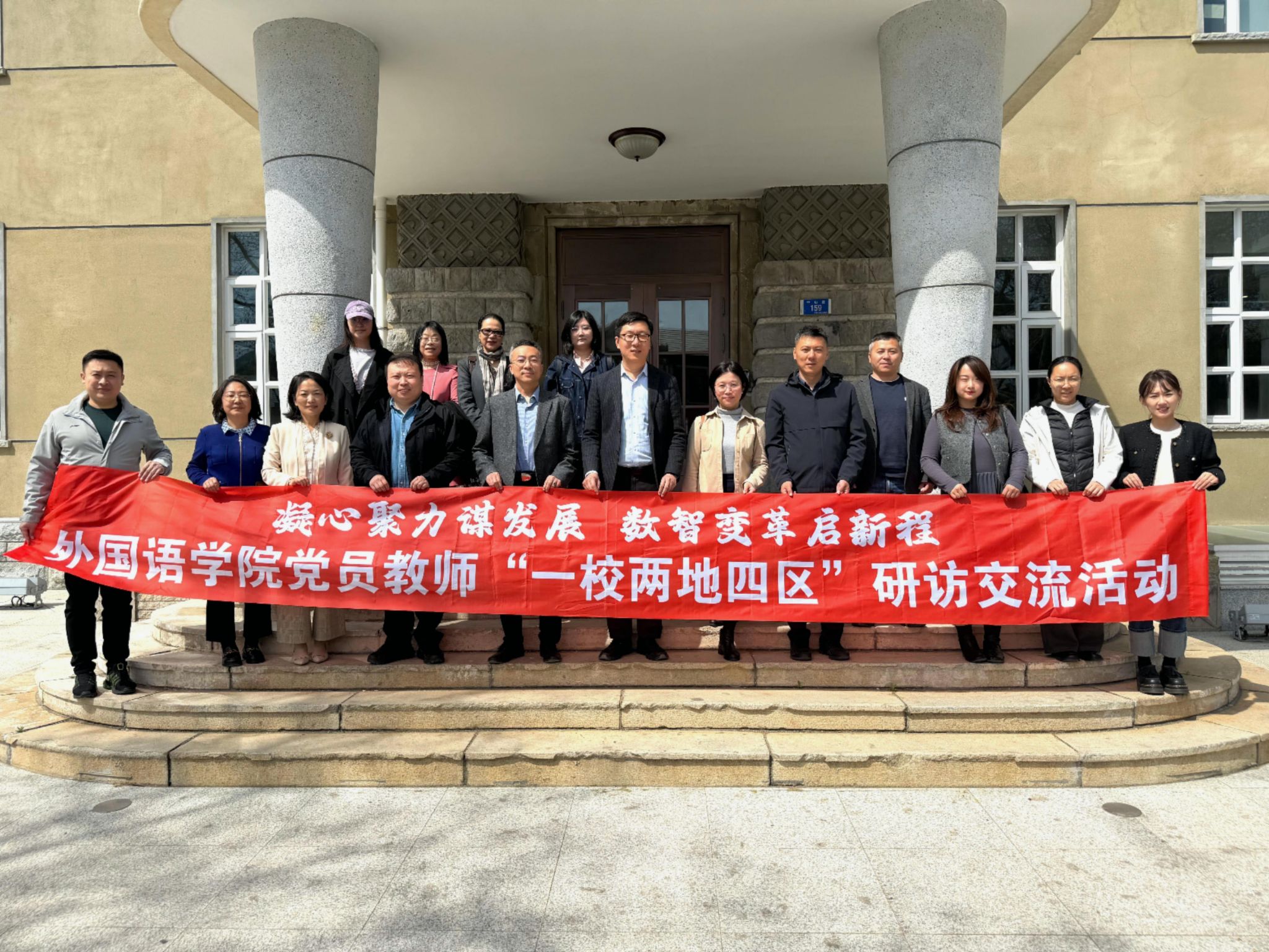 七十七载弦歌不辍、薪火相传,为引导党员及教师深度了解学校“一校两地四区”办学格局,进一步厚植爱校荣校情怀,4月22日,外国语学院党委组织开展了第二期“凝心聚力谋发展·数智变革启新程”教师研访交流系列活动。