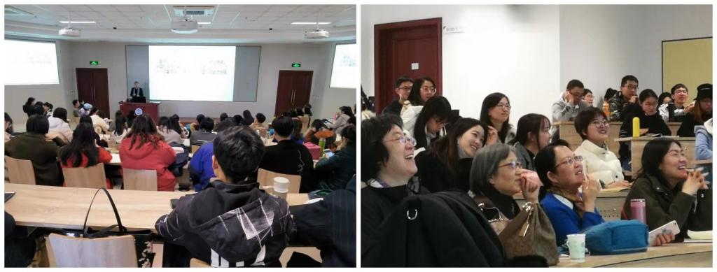来自我校国际精英班、外国语学院英语系、翻译系的本科生、研究生以及校内教师100余人参加了讲座。外国语学院副院长、校公共外语教学改革指导委员会工作办公室副主任、汪榕培典籍翻译研究中心主任李秀英教授主持了座谈会和讲座。