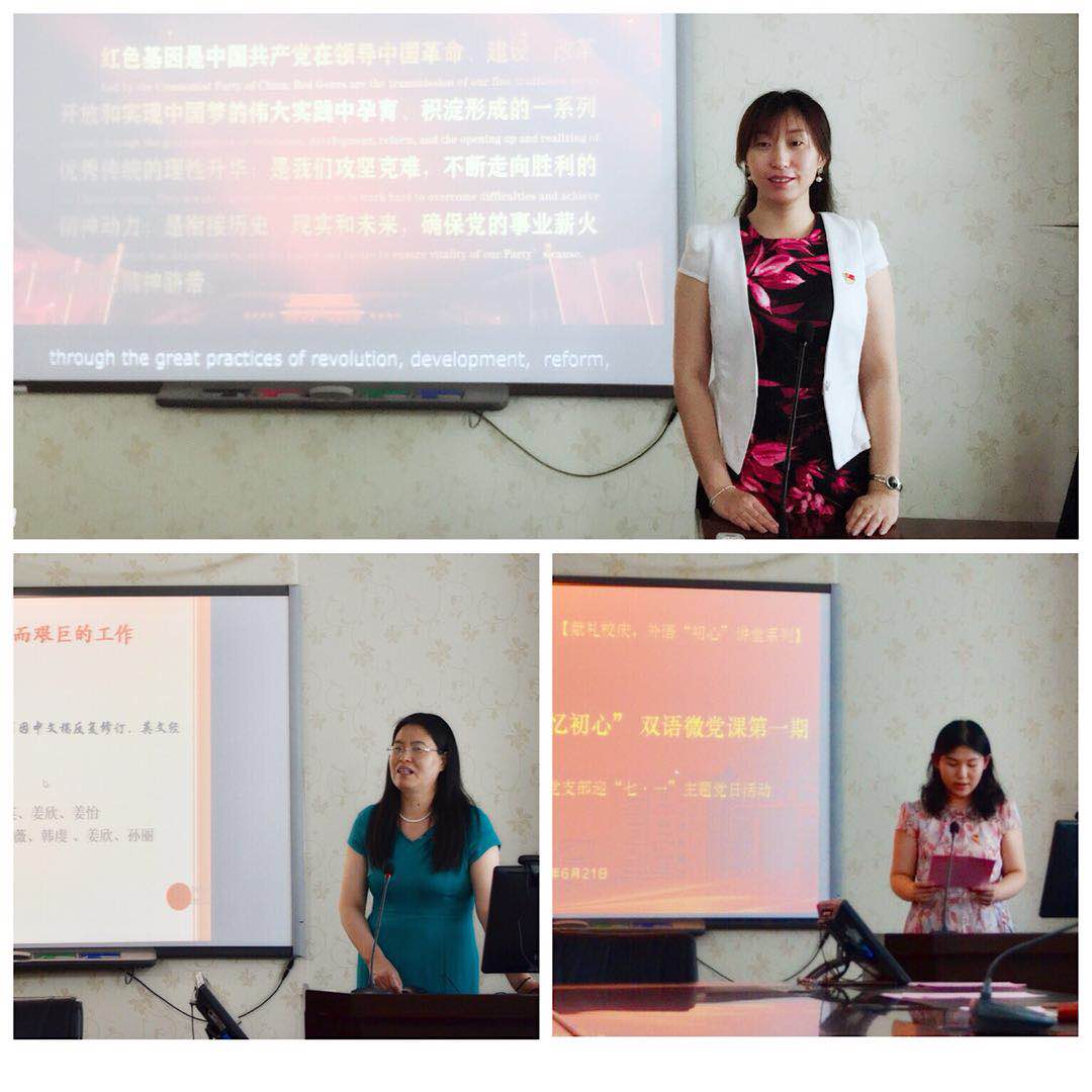 本次“译校史、忆初心”微党课是外国语学院“初心”双语讲堂系列活动的开端,主题党日活动以微党课视频展播、回望初心、感悟分享、红色宣言、座谈总结等多种形式进行,内涵丰富、激人奋进。