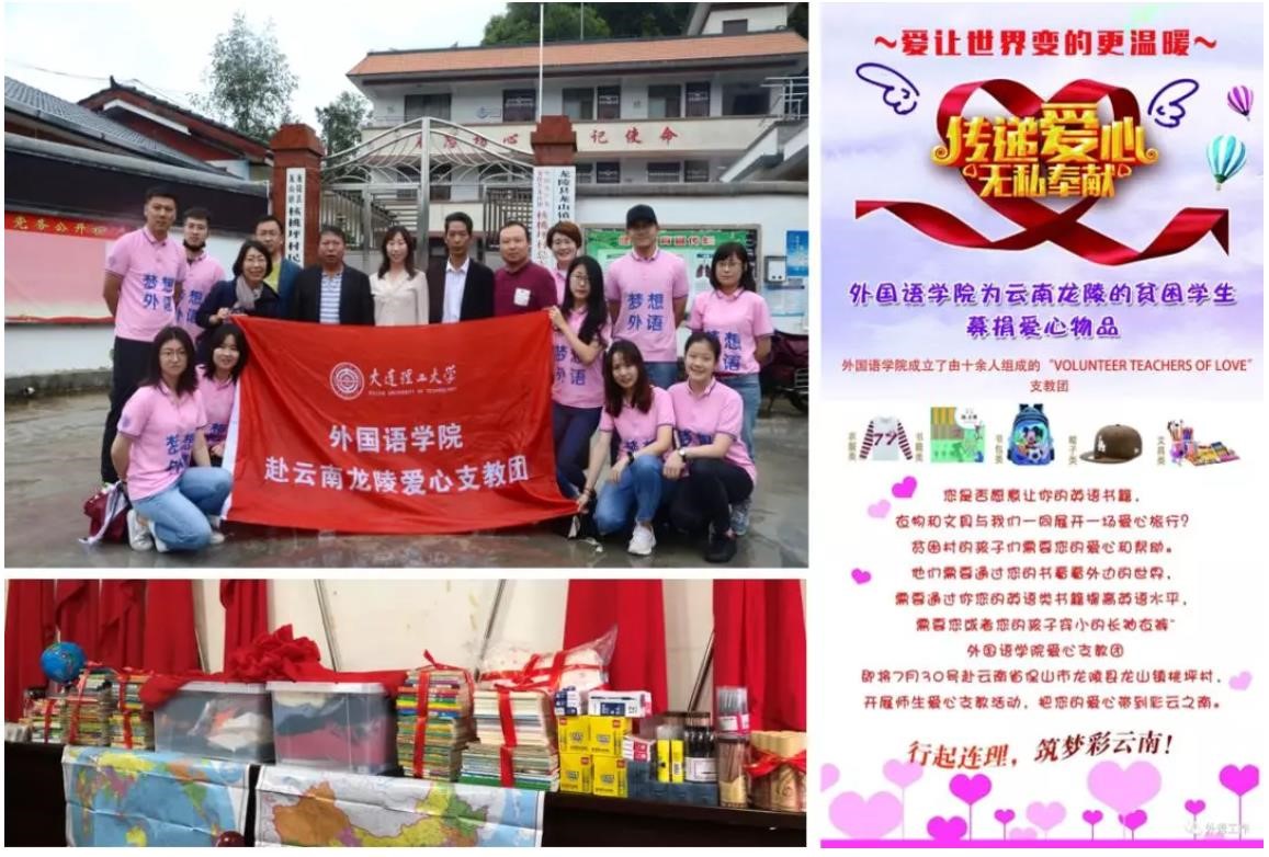 暑假伊始,外国语学院党委组织的青年师生“爱心支教团”一行13人再次踏上征程,带着募集的爱心书籍、文具等物资远赴云南省龙陵县贫困乡村开展暑期支教实践活动。爱心支教团的师生不忘“服务家国、奉献社会”的红色初心,奉献汇聚筑梦力量,青春点燃大山梦想,以行动践行外语人牢记使命勇担当的坚定信念。