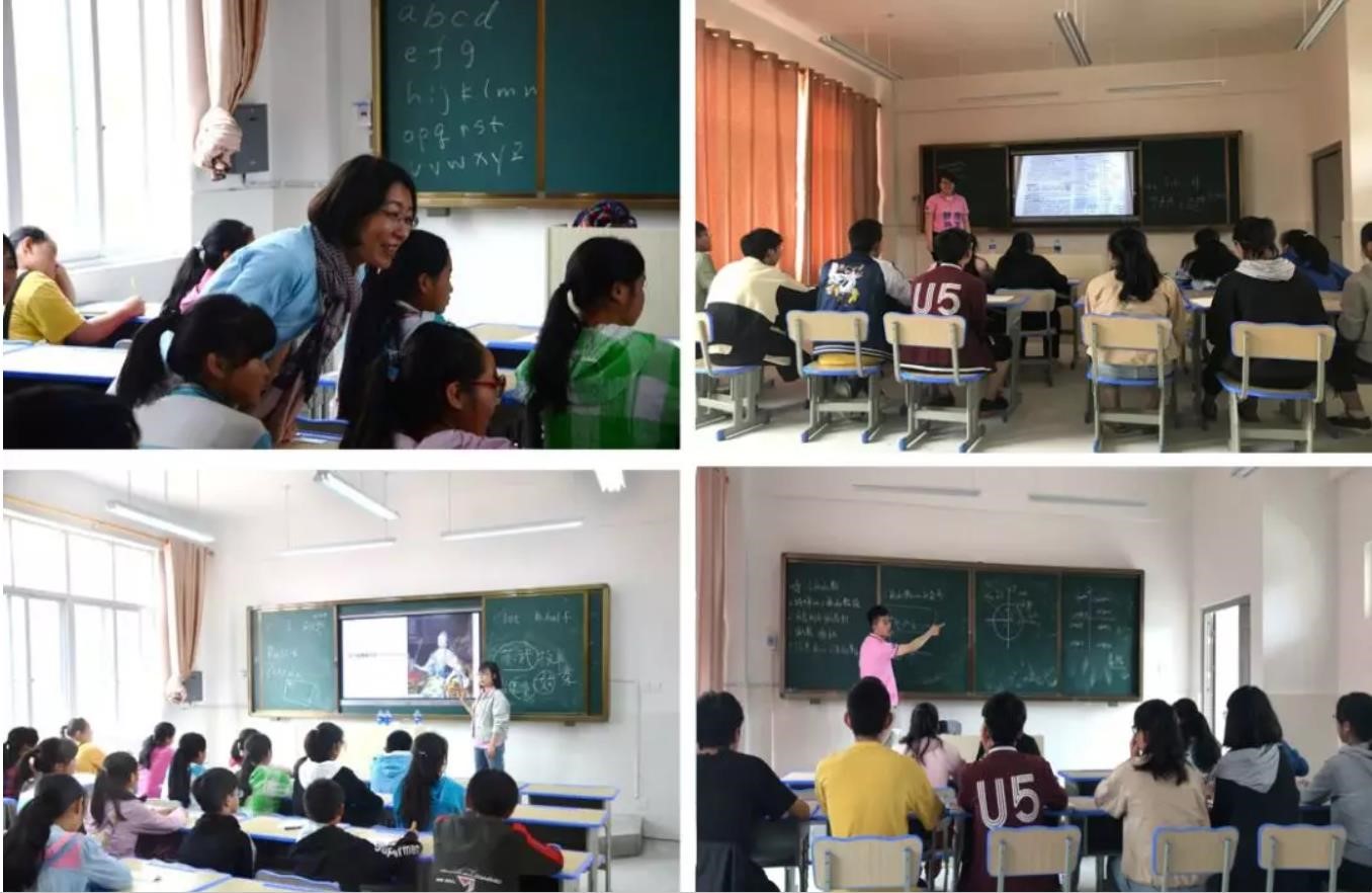 课程教学随着学生们的到来紧锣密鼓地开始了,山路崎岖交通不便,所以课程安排的非常紧凑,然而始料未及的是,学生的数量远超预计的人数,经过紧急商议后,支教团将学生分为小学1-4年级、小学5-6年级、初中1年级、初中2-3年级、高中总共5个班级近200人,并且根据每个班级的学生特点和需求制定相应的教学内容。
