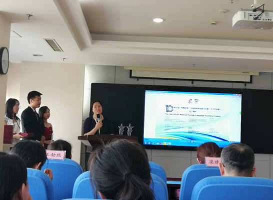 本届教学大赛包括授课和说课两轮角逐。经过对复赛选手授课录像公平、公开、公正的评审,综合课组和(视)听说课组共有32名选手进入决赛。决赛形式为现场说课,由组委会为选手提供一篇英语文章(综合课组)和一段视频(听说课组),选手经过现场30分钟的赛前准备后进行课堂教学设计的展示。我校外国语学院李秀英教授受组委会邀请担任(视)听说组专家评委组组长,并在颁奖典礼中对各位选手的表现进行了精彩的点评。