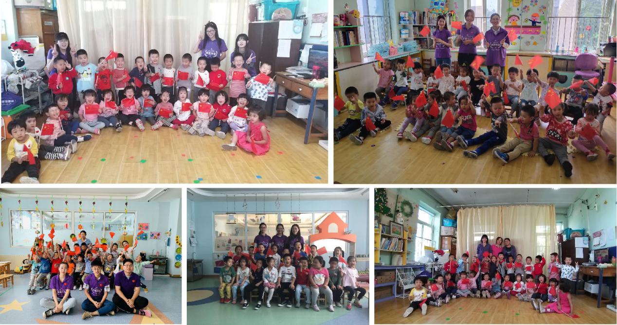 九月的大连,秋高气爽,9月25日、9月29日一早,“爱心支教团”队员们就带着爱心小国旗分成3组奔赴大工园、大华园、普罗园3所幼儿园,共22个班级。青年教师和由2019级研究生党员,入党积极分子以及部分团员组成的支教团队共同精心策划,激情满满让小朋友们度过了一个难忘的国庆。