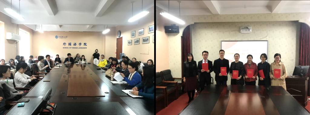 会后,张丽书记为7位老师颁发“双语思政青年教师先锋”证书,优秀的老师将被推荐到学校的竞赛单元。