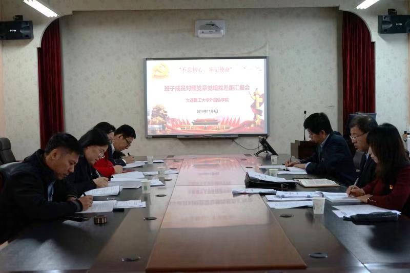 按照学校与学院“不忘初心、牢记使命”主题教育部署安排,外国语学院于11月4日上午召开领导班子调研成果交流会议和对照党章党规找差距专题会议。学校党委常委、副校长薛徽出席会议并对外国语学院主题教育工作做出指导。会议由外国语学院党委书记张丽主持,学院党政领导班子全员参加会议。