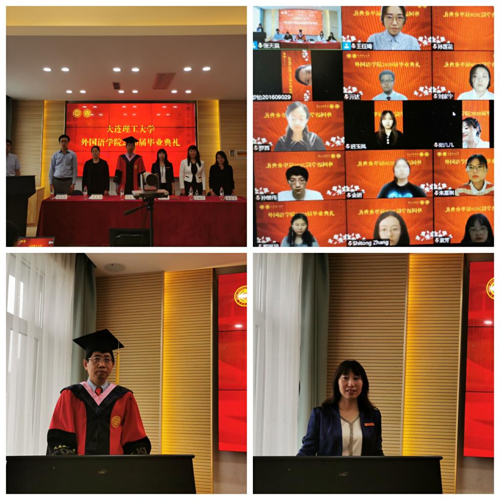 6月12日下午,外国语学院2020届“云端”毕业典礼隆重举行。学院主校区和盘锦分院党政领导班子,学院教师,2020届160名本科生、99名研究生和学生家长相聚于“云端”,共同参加、见证了这场珍贵且独特的毕业典礼。