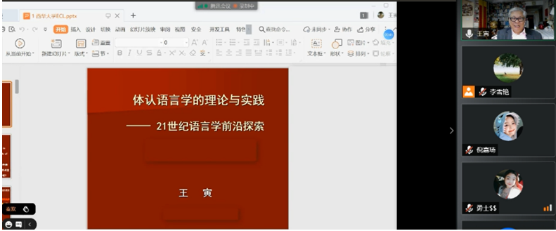 2020年11月18-19日,大连理工大学外国语学院语言学前沿论坛暨第九期体认语言学讲习班在腾讯会议成功召开。本期体认语言学讲座主讲人分别为王寅教授、刘玉梅教授和王慧莉教授。