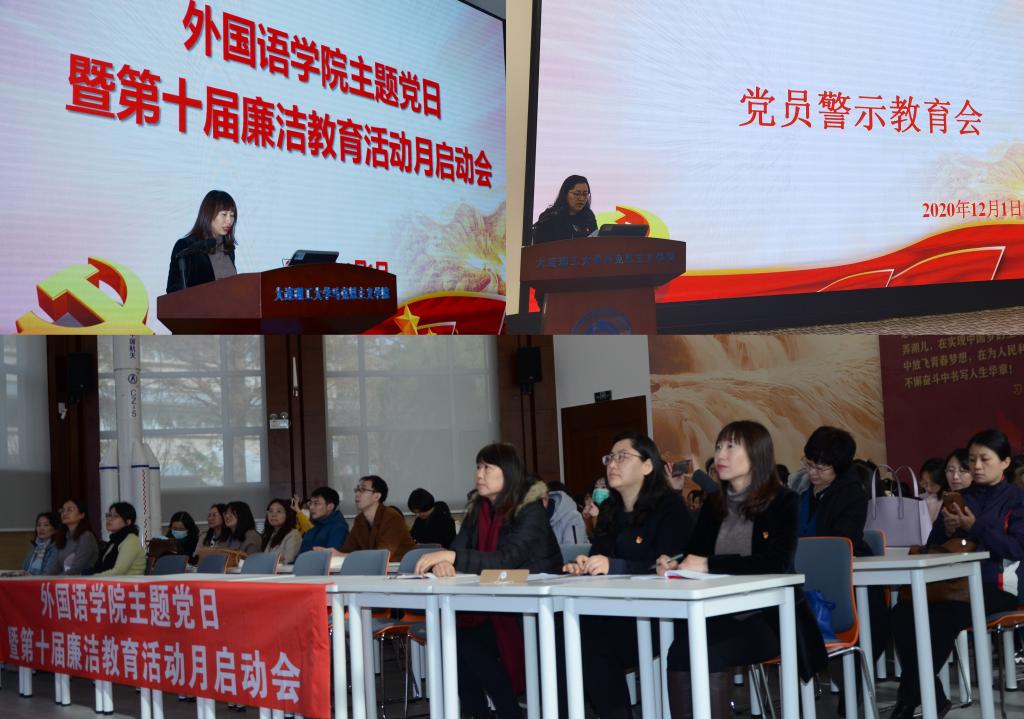 学院纪委书记徐明莺对外国语学院第十届廉洁教育活动月进行了工作布置,并通报了教育部直属高校考试招生违规行为典型案例。全体师生党员观看了廉洁教育警示片《裂变》。