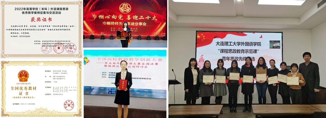 近年来,学院获“全国党建工作样板支部”、辽宁省“巾帼文明岗”、辽宁省“主题示范党日”一等奖、“辽宁省基层组织创新成果”一等奖等;学院英语、日语、翻译3个专业均获批“国家级一流本科建设专业”、学院女教师团队荣获全国“教材建设奖”一等奖、首届全国“高校外语课程思政教学大赛”决赛特等奖等多个奖项,展现了大工外语人的风采,书写了精彩的巾帼篇章!