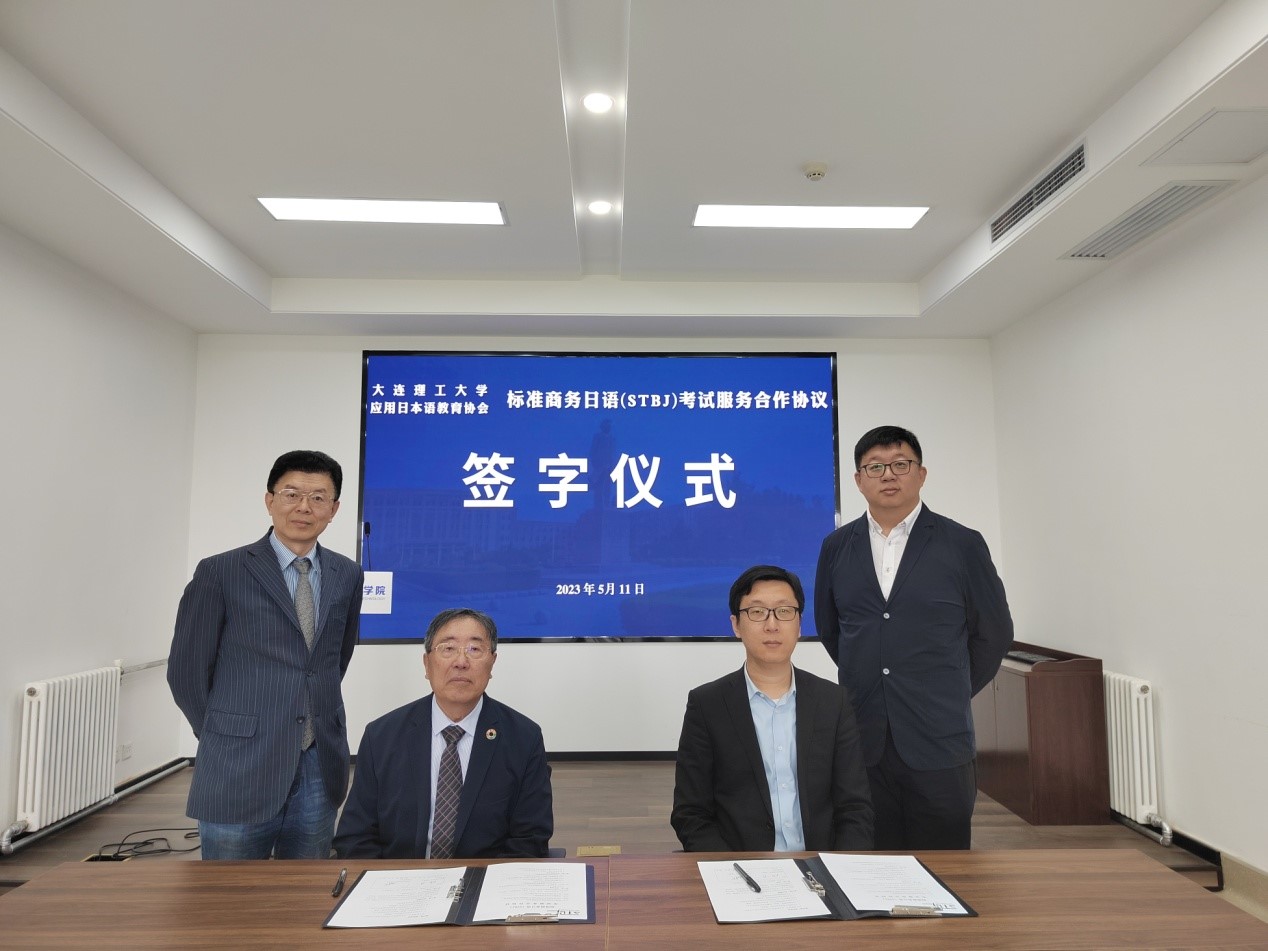 2023年5月11日,大连理工大学外语考试中心与应用日本语教育协会中国事务局就标准商务日语(STBJ)考试服务事宜签订合作协议。外国语学院副院长孙成志教授,应用日本语教育协会中国事务局负责人陈岩教授、申旭峰所长出席并签约。