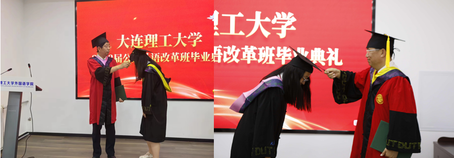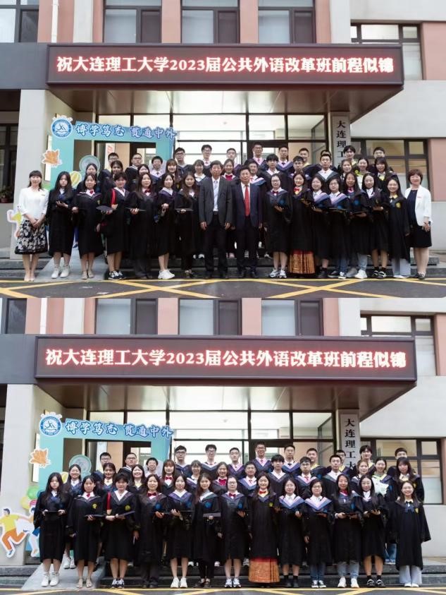2023年6月19日晚,我校公共外语教学改革班2023届毕业典礼在海晏楼715隆重举行。40名毕业生圆满完成了联合培养计划,获得英语(国际组织与全球治理)双学位证书和二外辅修证书。大连理工大学教务处处长、博士生导师刘志军教授,外国语学院院长、博士生导师陈宏俊教授,外国语学院党委张丽书记出席,毕业典礼由外国语学院副院长丁蔓教授主持。另有多名学生家长到场见证。