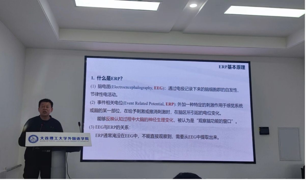 最后,广东外语外贸大学学报主编孙毅教授作了题为“ERP实验技术在语言认知科学研究中的应用”的主旨发言,从ERP基本原理、语言认知研究中的常用ERP成分、语言认知的ERP研究举例三个方面对于ERP技术的相关知识和应用进行了全面的介绍。浙江大学城市学院王慧莉教授和外国语学院张冬瑜教授分别主持了主旨发言。