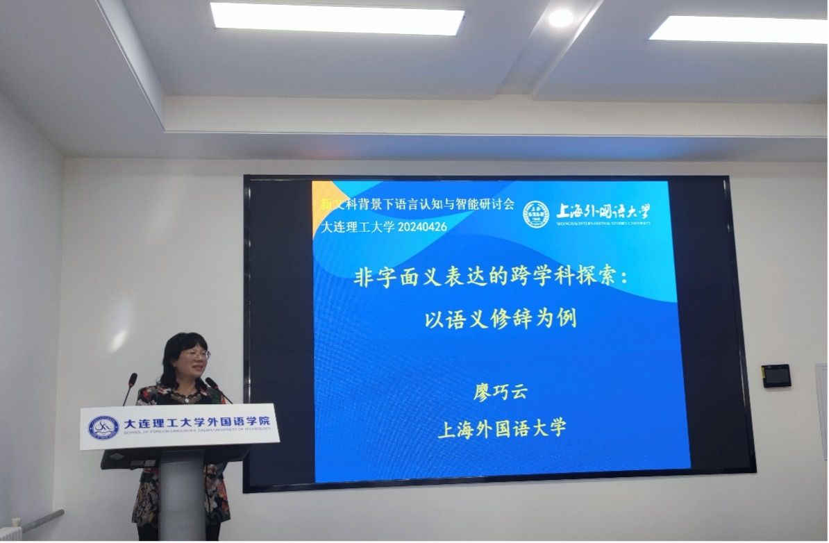 上海外国语大学廖巧云教授做了题为“非字面义表达的跨学科探索:以语义修辞为例”的主旨发言,详细阐述了语言跨学科研究的内涵、理论探索、实证探索、和对于未来发展的展望。