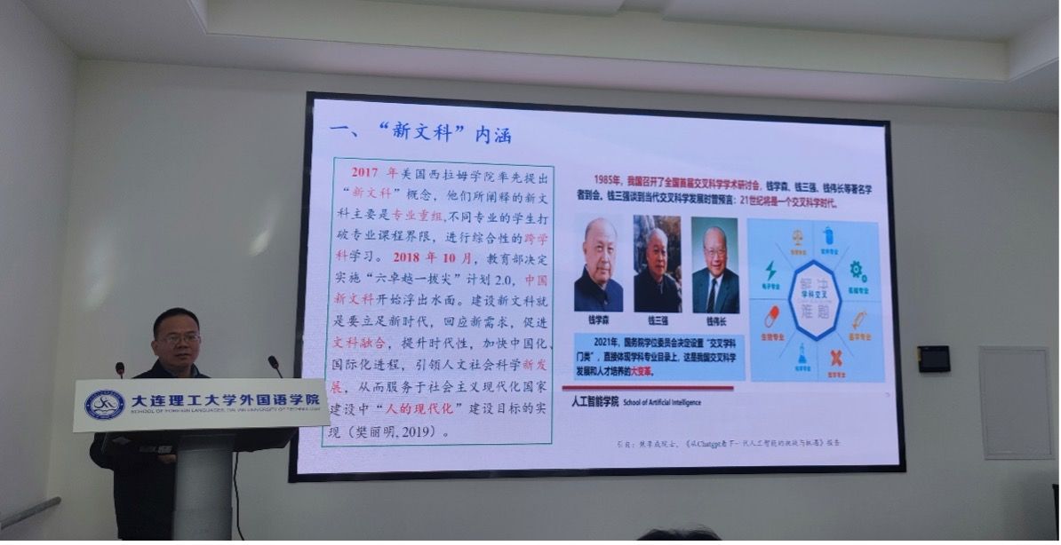 之后,四川外国语大学姜孟教授做了题为“语言智能与新文科建设”的主旨发言,对“新文科”和“语言智能”两个重要概念的内涵进行了深入浅出的阐释,并分享了四川外国语大学在语言智能发展方面做出的探索和取得的成果。