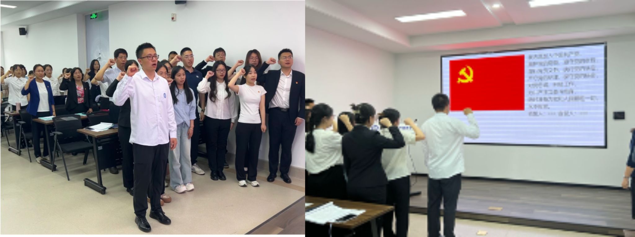 最后,会议举行了新党员宣誓暨党员重温入党誓词仪式。新发展预备党员佩戴上崭新的党徽,和全体党员一起面向鲜红的党旗,高举右拳、庄严宣誓。他们用铮铮誓词向党组织做出了庄严的承诺,表达了为共产主义事业奋斗终身的决心。