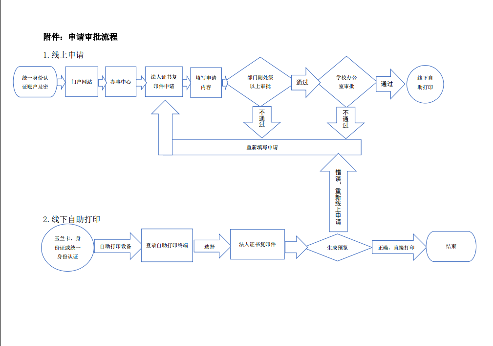 为进一步提高学校信息化服务水平,方便师生办理业务,从即日起,正式启用申请使用事业单位法人证书(副本复印件)、开具介绍信2项业务自助打印服务。师生可登陆校园门户网上办事中心,完成线上申请审批后(具体流程请见附件),即可到自助打印服务终端进行打印。