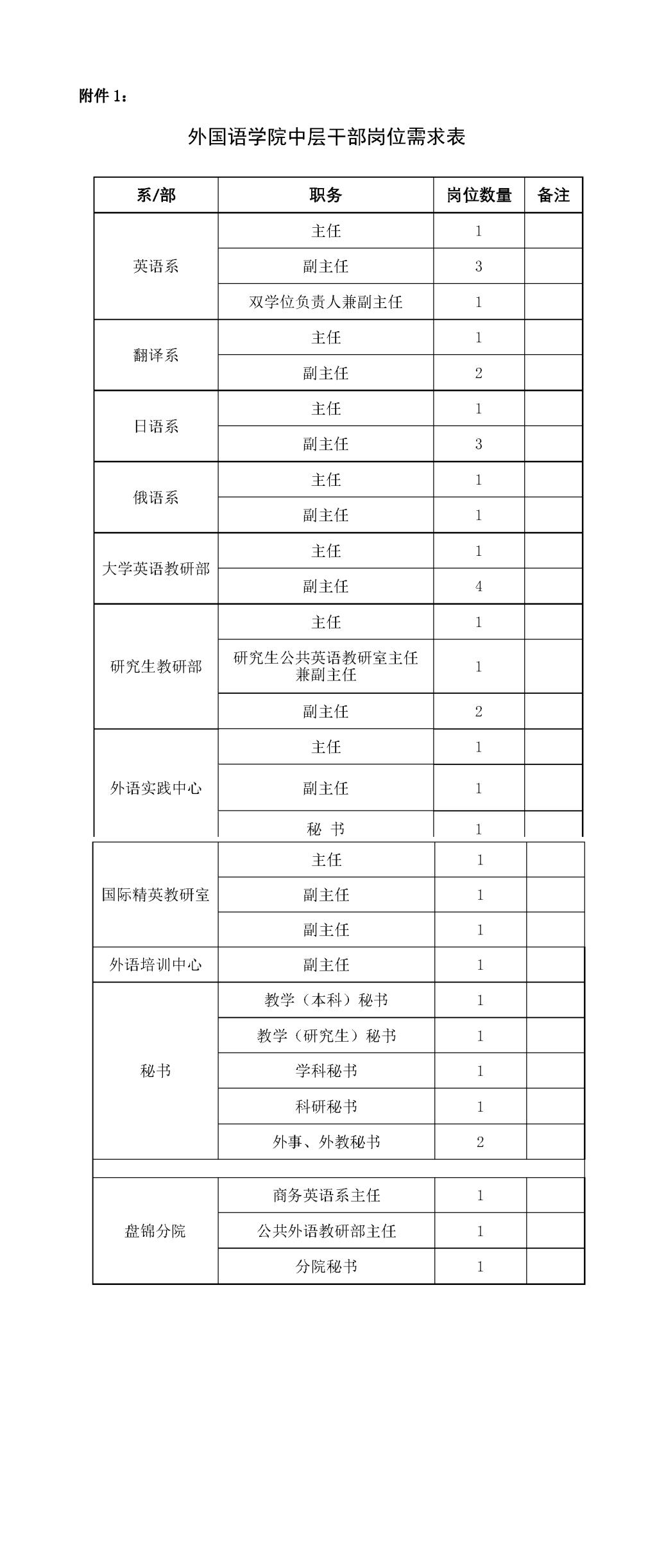 因学院发展工作需要,外国语学院党委面向全院教师开展内设干部选拔工作。现将有关工作通知如下: