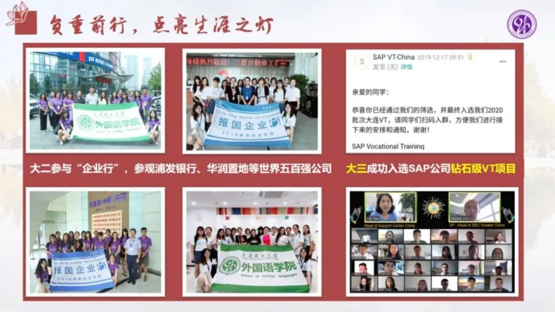 大二学年,她曾赴浦发银行、华润置地等5家世界500强企业学习交流;大三学年,打败众多竞争者入选SAP公司钻石级实习项目。