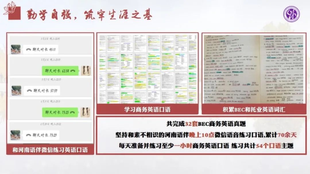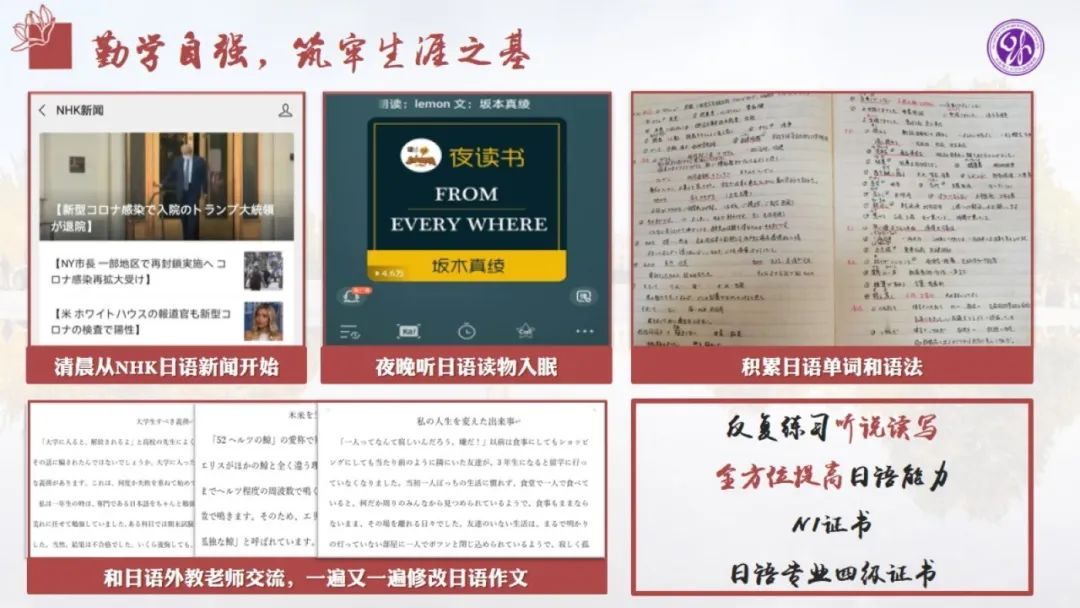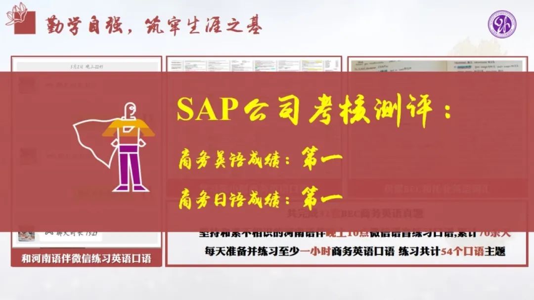 此外,正是凭借着对专业课和英语学习永不放松的劲头,她得以在SAP的英日双语考核均拔得头筹。