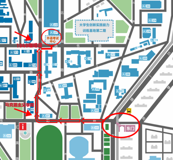 1. On the test day, theEast gate of Dalian University of Technology is the only way in and out of the campus, it is about 7 minutes to walk to the test center (on-campus candidates can go there by themselves). It is advised to arrive at the test site at least half an hour early.