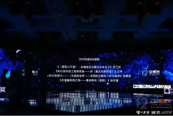 On October 23rd, 2021, the 12th Chinese Nebula Award ceremony was held in Chongqing. Lv Guangzhao, a 2016 graduate of the School of Foreign Languages at Dalian University of Technology and a doctoral candidate in Comparative Literature at University College London, won the silver award “Review of the Year 2020” forThree Feet of Snow in Jinyang: “Silk Punk and Retro Futurism.” Liu Cixin, a famous science fiction writer, Sanfeng, a famous science fiction scholar, and Zhong Tianyi, an emerging science fiction author also received awards. The gold award winner was Jiang Zhenyu, a famous science fiction scholar and postdoctoral teacher at Sichuan University.