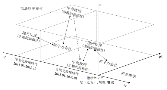 Figure 3. Discourse space model analysis of the “restarting of nuclear power” inAsahi Shimbun